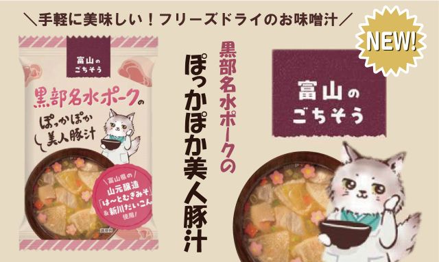 富山県産のはと麦、大豆を使用した山元醸造のお味噌「は~とむぎみそ」を使用。